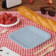 Simple minimal bow dusty blue baby showerDesigned by Stacey Meacham