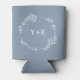 Elegant Simple Dusty Blue Monogrammed Wedding Can Cooler