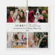 Share festive joy with your nearest and dearest this holiday season with our elegant white Merry Christmas photo collage holiday ornament, showcasing 4 photos that you can personalise with your own favourite family moments. The timeless black text beautifully complements the calligraphy script to say 'Merry Christmas' plus the smaller text underneath is customisable for you to add your personal holiday message. A simple yet elegant keepsake design that you can make uniquely personal to reflect your family's style, then gift to your family and friends this Christmas season!