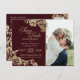 Elegant simple modern faux printed gold foil rose floral and burgundy red, Save the Date wedding card. Very classic and sophisticated design for the marrying couple. All photo print. ****Please hit the (Customise it!) button for more size, colour and placement options.****
