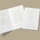 Modern minimalist simple typography trendy faux gold and clean white folded ceremony and party wedding program template featuring a chic trendy calligraphy script. ++++++++++++ Easy to personalise with your text on the front and inside!