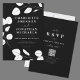 This beautiful and elegant black and white wedding invitation features a sophisticated eucalyptus leaf sprig design, with simple grey line art and delicate white leaves set against a striking black background. The modern minimalist style offers a chic, botanical touch, perfect for a classic yet trendy wedding. The invitation includes a QR code on the back with online RSVP details, making it easy for guests to respond. The easy-to-use templates are complemented by white elegant typography, adding an extra touch of sophistication. Available for both printable download and modern printed options, this unique, artist-created invitation features a minimalist eucalyptus sprig line art drawing by Catherine Sweetman, adding a stylish, personal touch to your celebration. Perfect for couples seeking a timeless, modern invitation with a botanical flair.