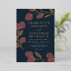 Beautiful burgundy leaves with gold foil on a navy blue simple modern elegant eucalyptus leaf sprig wedding invitation design. Minimalist greenery line art drawing, simplistic and stylish and perfect for a botanical diy printable download or modern printed wedding invitation. Easy to use templates with white and gold foil elegant typography script on a dark red burgundy background. Unique artist created custom wedding invitation. A minimalistic foliage burgundy and navy blue wedding invite design. Original artwork by artist Catherine Sweetman