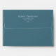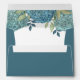 A simple minimalist wedding envelope, this design features a simple minimalist wedding envelope, return address back flap, floral botanical greenery flower, minimal white text font, modern calligraphy ampersand names, bride groom monogram names, classic typography tradition formal, blue hydrangea matching envelope, teal turquoise blue envelope, elegant wedding invitation envelope