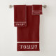 Elegant simple stylish text on maroon Bath Towel Set. Name text only on one side!