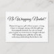 If you're hosting a no-gift-wrap display shower for a bride-to-be, this simple, elegant card could be the choice for you. Using an elegant script font, I first added a header that reads "No Wrapping Needed!" on the front, and "Gifted with Love, From:" for the gift tag side. A template field was set up to offer instructions for guests not wrapping their present; please feel free to change the wording if needed. All fonts and colours can be modified as you see fit.