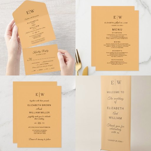Elegant Simple Peach Monogram Wedding All In One Invitation
