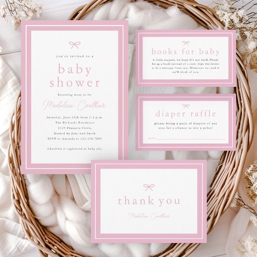 Simple Pink Bow Girls Baby Shower InvitationDesigned by Stacey Meacham
