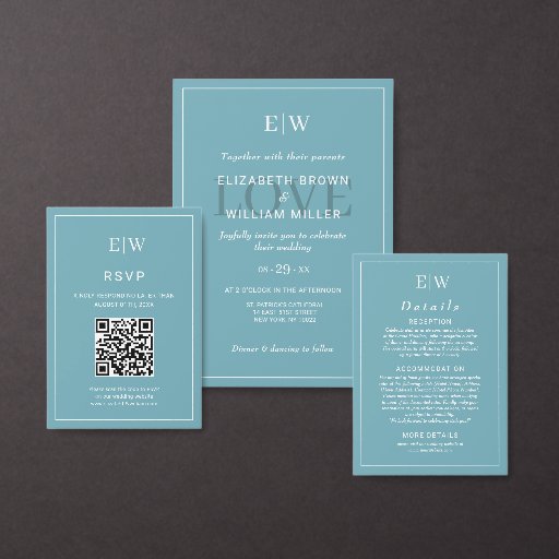 Elegant Simple Retro Blue with Monogram WeddingDesigned by Milka Lovrin