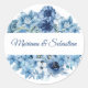 Elegant Simple Rustic Blue Wedding and Invitation Classic Round Sticker