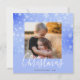 This Elegant Simple Christmas Card features snowflakes on a light purple background. Merry Christmas is written in a beautiful handwritten script. Personalise this Christmas Sticker with your photo and family name.