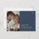 Introducing our Elegant Simple Stylish Navy Blue and Gold Chic Photo Thank You Card, designed to embody modern elegance and minimalist sophistication. This unique card offers a stylish and personalised way to express gratitude to your wedding guests, reflecting your refined taste and attention to detail.