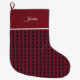 Elegant Simple Stylish Red Navy Gingham Name Large Christmas Stocking