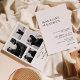 This wedding invitation features a minimalist design with a grid of four heartfelt couple photos at the top. The lower section uses elegant, centred serif typography for key details, creating a balanced and sophisticated look that highlights warmth and intimacy.