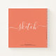 Personalised Coral White Sketchbook with Your Name in Elegant Handwritten Script Font Typography. Elke Clarke© Add you name or monogram or text using the customise menu.