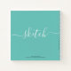 Personalised Teal Aqua Blue White Sketchbook with Your Name in Elegant Handwritten Script Font Typography. Elke Clarke© Add you name or monogram or text using the customise menu.