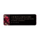 This is a gothic style image featuring an intricate red skull surrounded by lush, dark floral patterns in shades of black and gold. The design exudes a sophisticated yet mysterious vibe, perfect for those who appreciate the macabre with elegance. It's ideal for creating a unique and memorable impression on wedding invitations or formal correspondence.