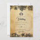 An elegant yet gothic budget Halloween theme wedding invitation that features black lace and a pair of skull and crossbones. The colours can be changed to suit your wedding theme by click on the "Edit using design tool" button. The wedding details are set in traditional serif and calligraphy script typography giving your invitation a classic spooky look. The perfect shabby chic invite for an October wedding, skull hallowedding, and fall invitations. To see matching designs visit www.zazzle.com/vginvites