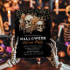 Give your Halloween party the touch of sophistication it deserves with our elegant party invitations. Featuring a tastefully dark backdrop adorned with watercolor skulls and vibrant orange florals, these invitations capture the essence of chic Halloween. Our easy-to-personalise templates and glittering gold waterfall backdrop injects a dash of glittering spook to your event. Set the tone right for your Halloween night.