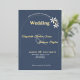Elegant Slate Floral Arch Typography Wedding Gold Foil Invitation. This elegant slate blue with gold foil invitation blends modern simplicity with classic romance, creating a refined look perfect for formal ceremonies, evening weddings, and sophisticated venues. The minimalist floral detail adds softness without overpowering the design, allowing your names and wedding details to remain the focus.