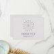 Elegant business thank you card featuring a modern design with an abstract flower over a slate grey / grey background. If you prefer, you may replace the abstract flower image with your own logo in the template form. This thank you card is great for an aesthetician, hair stylist, makeup artist, beauty salon or nail salon.