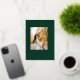 Make an understated but impactful holiday statement with this sleek, modern take on art Deco style featuring chic thin gold foil lines surrounding a single portrait aspect photo template with a deep hunter green background and complementary gold foil font. The back features an additional square photo template, gold lined border and text fields.