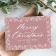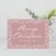 Elegant holiday card with "Merry Christmas" displayed in a bold white calligraphy script with a white snowflake and pine branch border on a mauve background. Personalise the front of the non-photo holiday card by adding your name and the year. The back of the modern holiday card features your custom message with a beautiful snowflake pattern.