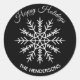 This black and white sticker is accented with Happy Holidays written in a fun font, your name and a bright white snowflake, making it perfect as an envelope seal or gift tag during the holiday season.