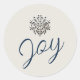 Elevate your company's holiday gift presentations with our Elegant Snowflake Holiday Sticker. The exquisite design features a brushed metallic silver snowflake on a light background, exuding a sense of elegance and sophistication. The word "Joy" is elegantly scripted, adding a touch of holiday cheer to this refined sticker. Perfect for businesses and corporations, this sticker enhances the festive spirit while conveying your heartfelt holiday wishes. With its professional look and festive charm, this sticker is an ideal addition to your corporate gifting strategy, leaving a lasting impression on clients and partners.