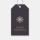 Elevate your gift-giving game this holiday season with our Elegant Snowflake Holiday Tag. The brushed metallic champagne snowflake graces the top of the tag, complemented by a sophisticated "Happy Holidays" message in elegant serif font. Against the backdrop of a rich dark natural background, these tags exude timeless charm and add a touch of luxury to your presents. Complete your gifts with this elegant finishing touch that captures the spirit of the season and makes every present even more special.
