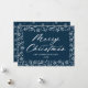 Elegant holiday card with "Merry Christmas" displayed in a bold white calligraphy script with a white snowflake and pine branch border on a navy background. Personalise the front of the non-photo holiday card by adding your name and the year. The back of the modern holiday card features your custom message with a beautiful snowflake pattern.