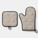 Elegant Snowflake Pattern Beige Oven Mitt & Pot Holder Set