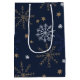 Elegant Snowflake Pattern Dark Blue Medium Gift Bag