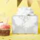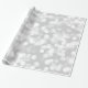 Elegant pattern of white snowflakes and sparkles on a light grey background.