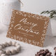 Elegant holiday card with "Merry Christmas" displayed on the front in a bold white calligraphy script with a white snowflake and pine branch border on a gingerbread-coloured background. Personalise the front of the non-photo holiday card by adding your name and the year. The inside of the card provides space for your typed or handwritten personal message. The back of the modern holiday card features a beautiful snowflake pattern.