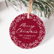 Add a personalized touch to your holiday gifts with these festive Christmas gift tags. The gift tags display "Merry Christmas" in a white calligraphy script encircled by a holiday wreath of snowflakes and pine branches on a cranberry background. Personalize the snowflake gift tags with your name or custom text.