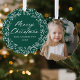 Celebrate the season with this elegant holiday photo ornament card, featuring “Merry Christmas” in white calligraphy script encircled by a wreath of snowflakes and pine branches on a rich dark green background. Personalise the front with your family name and the year for a classic and festive touch. The back of the ornament card showcases your favourite family photo, making it a timeless keepsake to share with friends and loved ones this holiday season.