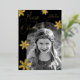 Elegant holiday photo card featuring your vertical photo framed by a black arch and gold foil snowflakes. "Merry Christmas" is displayed in a gold foil calligraphy script. Personalise the front of the gold foil Christmas card by adding your name. The card reverses to display an additional photo, the year, and your custom message in white lettering on a black background.