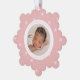 Celebrate your baby's first Christmas with friends and family with our Elegant Pink and White Snowflake baby's first Christmas ornament card. The front of the card displays your baby's photo encircled by a white frame with a light pink and white snowflake patterned background. Personalise the front of the snowflake ornament card with your baby's name and birth stats in pink lettering. The Christmas birth announcement ornament card reverses to display an additional photo.
