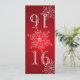 Red snowflake design DIY table number. Change number for each table and order individually for table numbers to coordinate with match invitations. Folded in half makes one 4" x 4 5/8" table number card.