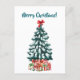 Send warm holiday wishes with this beautifully designed Christmas postcard featuring a classic snow-covered Christmas tree adorned with a red bow and surrounded by festive wrapped gifts. Perfect for spreading joy and cheer this holiday season, this Christmas card blends elegant watercolor artistry with timeless holiday charm. Personalise it with a custom text at the top and choose a background colour.