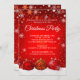 Elegant Snowy Red Christmas Balls Christmas Party Invitation