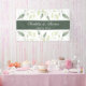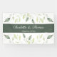 Elegant Wedding Banner with Soft Watercolor Green Leaves flowing from top and bottom. Front text includes the Bride and Groom's First Names and Wedding Date. Easy to complete template design. Matching Wedding Invitation and Accessories.Enjoy!