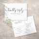 An elegant black and white signature script RSVP card with chic typography. The reverse features your details and a fun guest song request. Designed by Thisisnotme©