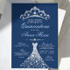 Modern yet elegant Quinceañera Mis Quince Anos invitations. Glitter diamond tiara / crown and dress / gown. Light blush navy blue and light blue white colors. Easy to edit template cards. Perfect for 15th girl birthday party.