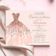 Modern yet elegant Quinceañera Mis Quince Anos invitations. Glitter diamond tiara / crown and dress / gown. Light blush pink rose gold colors. Easy to edit template cards. Perfect for 15th girl birthday party.