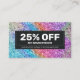 Elegant Sparkling Holographic Glitter Hairstylist Discount Card