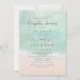 Romantic coastal themed couples shower invitation features beautiful turquoise abstract watercolor sparkling ocean wave and beach background, toped with stylish script and elegant font event details, modern and simple, great for sand beach wedding, tropical destination wedding, coastal ocean themed wedding.