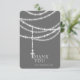 Gender Neutral Dark Grey Elegant Rosary Cross And Stylish Sparkles Religious Thank You Card For Baby Boys Or Girls.