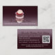 Offer your services as a speciality wedding cake baker and designer with this elegant bakery business card with a delicious red velvet cupcake decorated with swirled frosting and encircled with a strand of glamourous pearls. Personalise by adding the name of the baker and cake decorator. Schedule wedding design consultations by quick response by adding your own unique website QR code to the back. If you don't have one, you can use an online code generator.